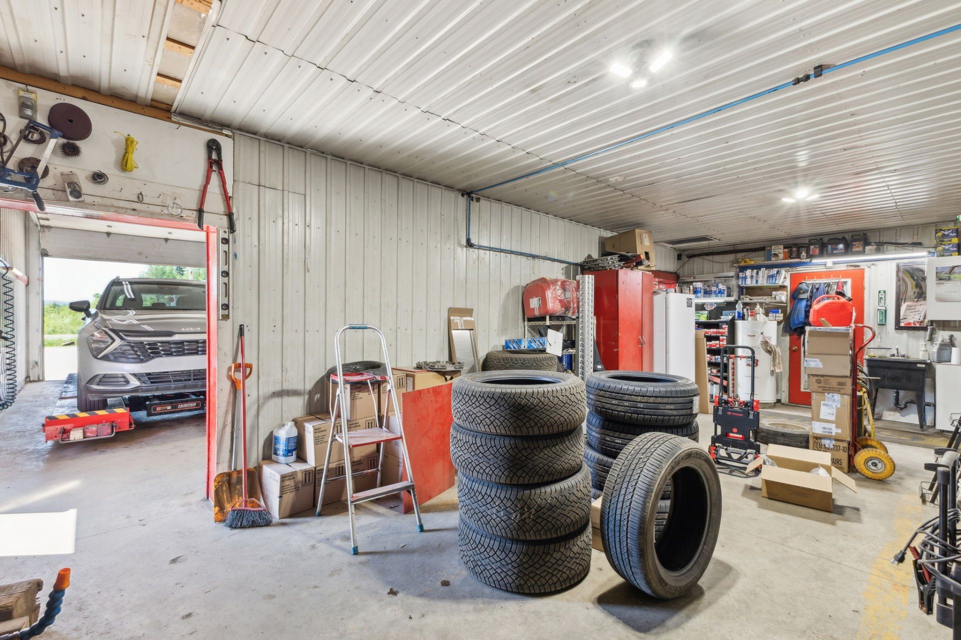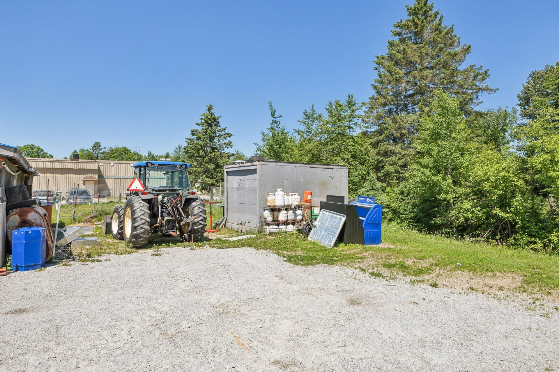 Tracteur, inventaires, réservoir de propane (Budget), machine à café, congélateur de crème glacée, support à croustille, caisse enregistreuse, appareil pour loto Québec, appareil pour guichet automatique ATM, outils des mécanicien