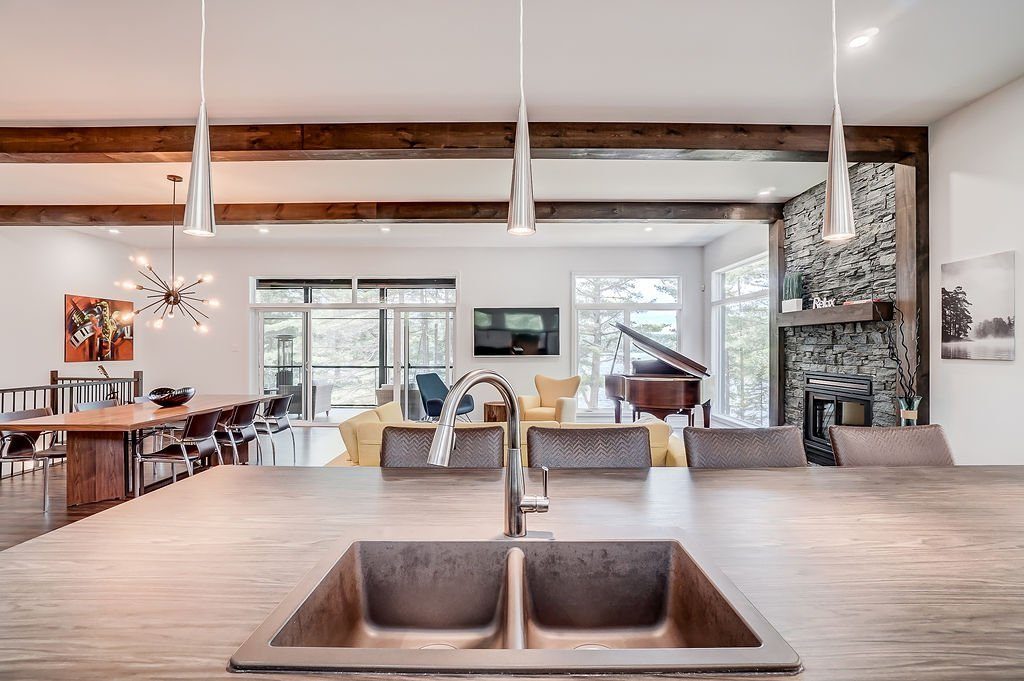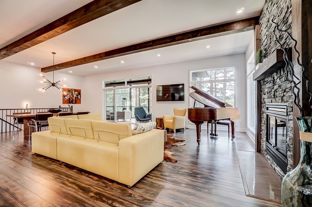 WOW! Superbe propriété bord de l'eau sur le prestigieux Lac Danford. Résidence de 4 400 pi² incluant le sous-sol walk-out aménagé, construite en 2018 par Construction Parisien. Offrant 4 chambres et 4 salles de bains dont 3 complètes. Magnifique cuisine moderne avec grand îlot, salon avec foyer au bois, plafonds de 10 pieds et finitions de qualité. Superbe véranda, cellier. Garage triple chauffé 22 x 34. Terrain exceptionnel de 70 362 pi². À seulement 15 minutes du Mont Ste-Marie et du golf, et à 45 minutes d'Ottawa.