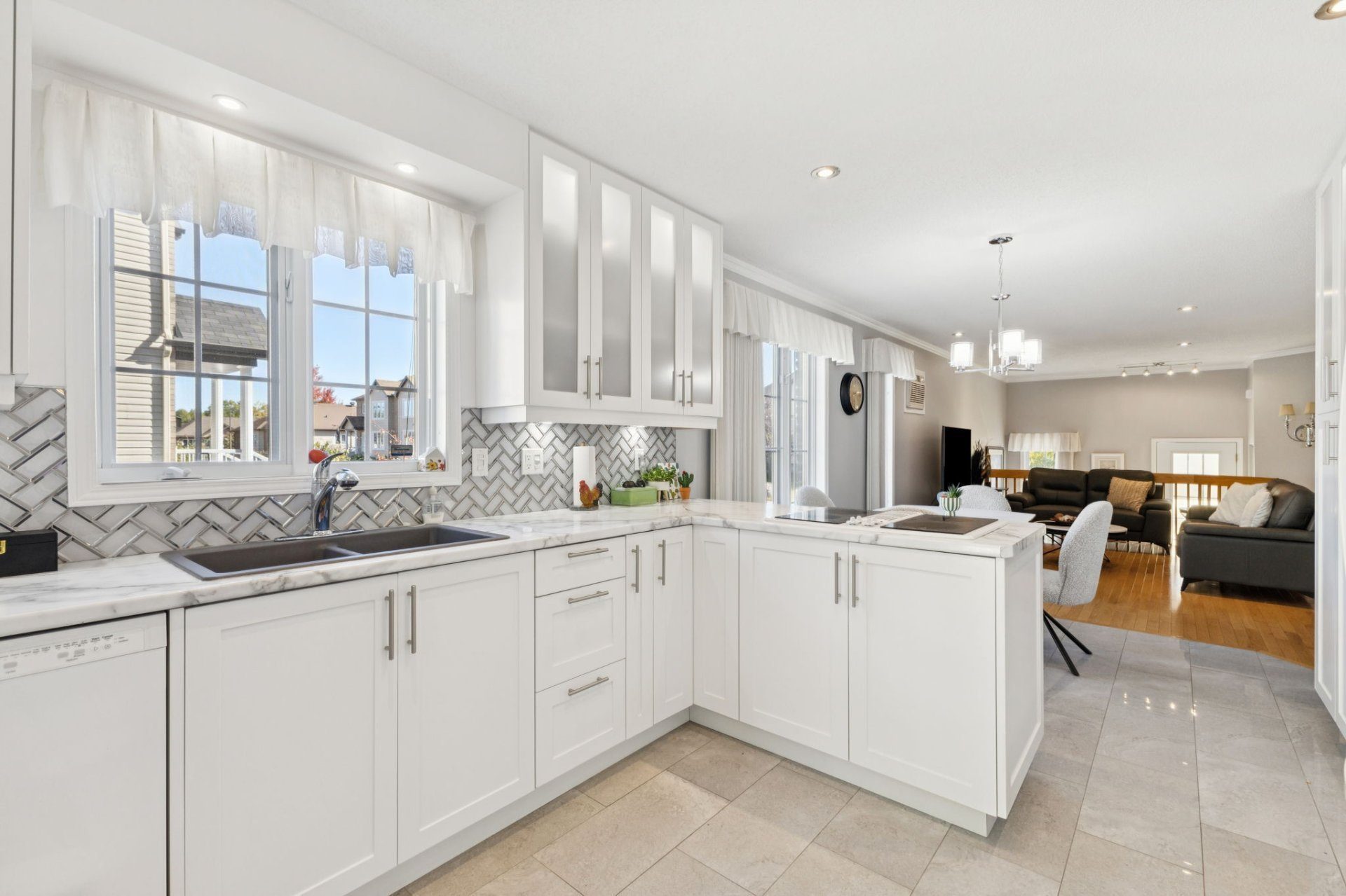 À l'intérieur, la maison séduit par sa luminosité abondante et son atmosphère chaleureuse. La cuisine rénovée, au goût du jour, est pensée pour combiner esthétisme et fonctionnalité : armoires modernes, surfaces pratiques et espace de travail convivial pour cuisiner en famille. Attenant à la cuisine, un charmant coin repas permet de profiter des matins ensoleillés, tandis qu'une salle à manger spacieuse accueille aisément vos invités pour des repas mémorables.