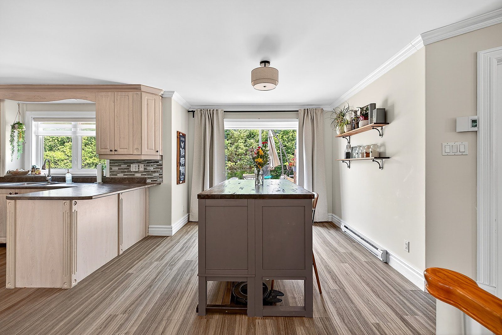 Maison principale: plaque induction; four à convection; lave-vaisselle; ilôt de cuisine avec les deux tabourets, stores. Logis adjacent 01; Stores, électroménagers, meubles et équipements. Logis adjacent 02; Stores, électroménagers, meubles et équipements.